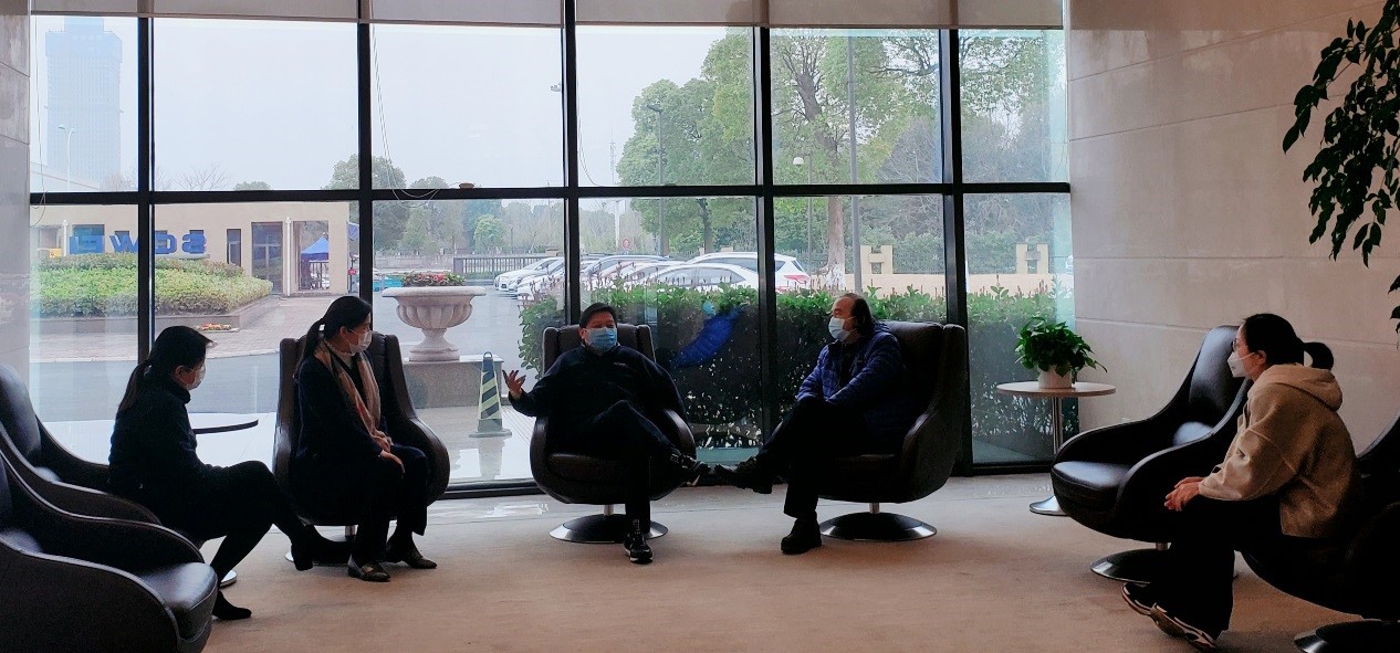 在公司門口檢查處,姜秘書長一行嚴格遵守疫情管控管理,逐一進行了體溫檢測后方才進入公司。碩維董事長劉洪爐對姜秘書長一行的到來表示熱烈歡迎,雙方見面時由往日緊密的握手問好改為雙手抱拳作揖,在特殊時期避免了肢體上的接觸。
